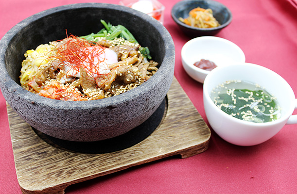 - (御飯・味噌汁・香の物・小鉢・甘味)